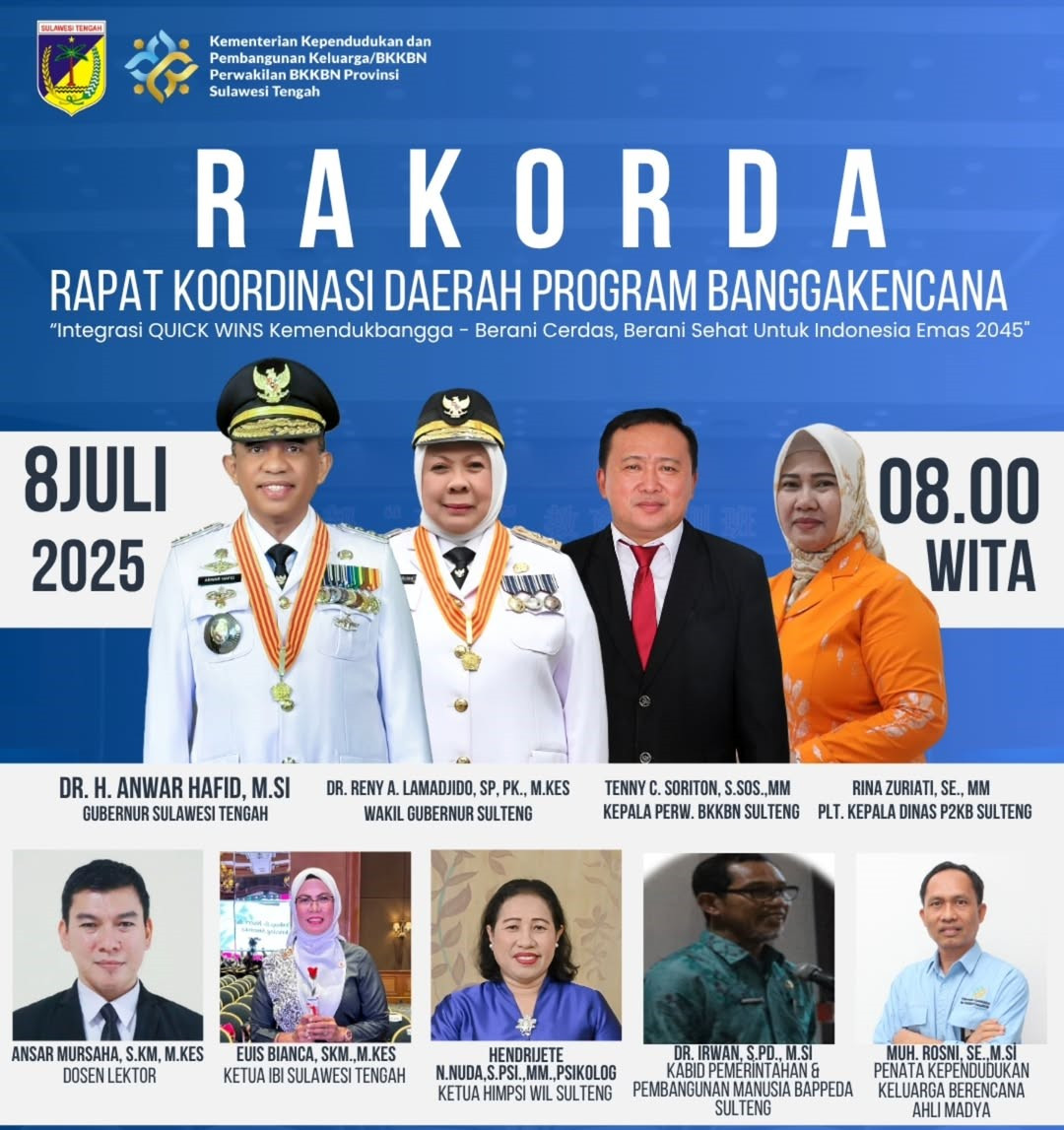 Hal tersebut mengemuka dalam Rapat Koordinasi Daerah (Rakorda) Program Bangga Kencana, Selasa (8/7/2025), di Hotel Best Western Palu. Kegiatan ini menghadirkan narasumber lintas sektor, termasuk dari Bappeda Provinsi Sulteng, serta tim pengendalian kependudukan dan data stunting.